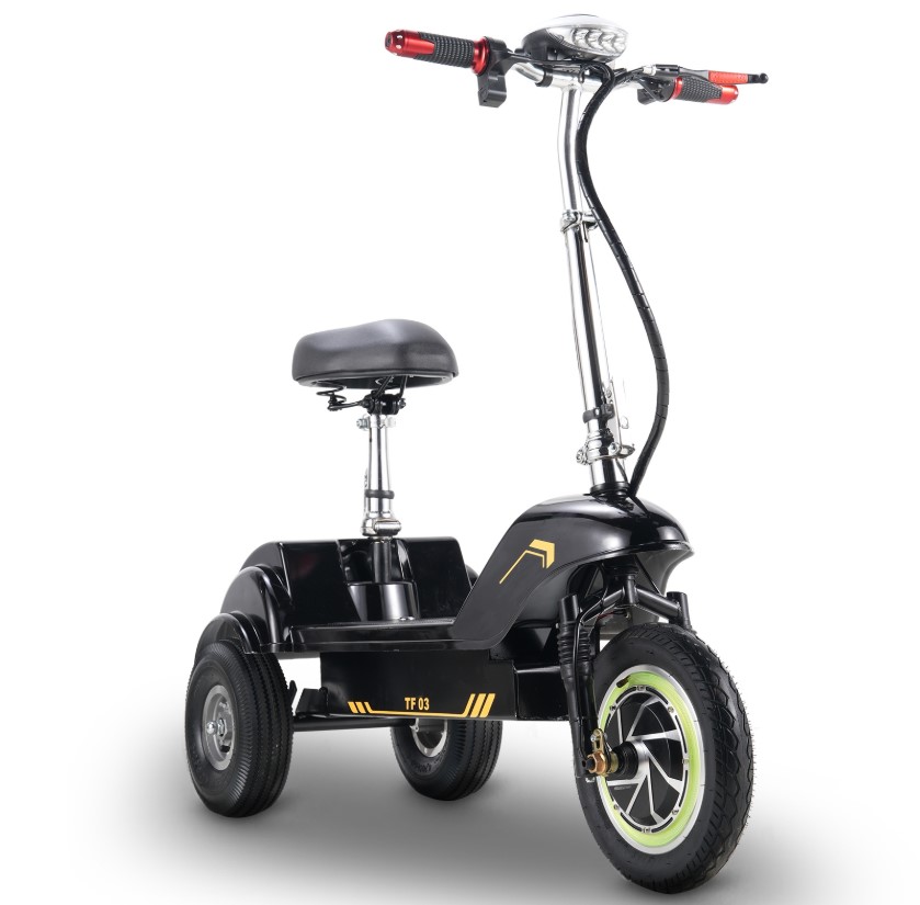 Na rozdíl od klasických dvoukolových modelů nabízí TF03 trojúhelníkovou konstrukci, která výrazně zvyšuje stabilitu a eliminuje riziko převrácení.